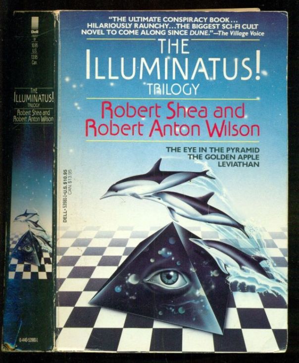 “The Illuminatus! Trilogy is a series of three novels by American writers Robert Shea and Robert Anton Wilson, first published in 1975. The trilogy is a satirical, postmodern, science fiction–influenced adventure story; a drug-, sex-, and magic-laden trek through a number of conspiracy theories, both historical and imaginary, related to the authors’ version of the Illuminati. The narrative often switches between third- and first-person perspectives in a nonlinear narrative. It is thematically dense, covering topics like counterculture, numerology, and Discordianism. The trilogy comprises three parts which contain five books and appendices: The Eye in the Pyramid (first two books), The Golden Apple (third and part of fourth book), Leviathan (part of fourth and all of fifth book, and the appendices). … The plot meanders between the thoughts, hallucinations and inner voices, real and imagined, of its many characters—ranging from…