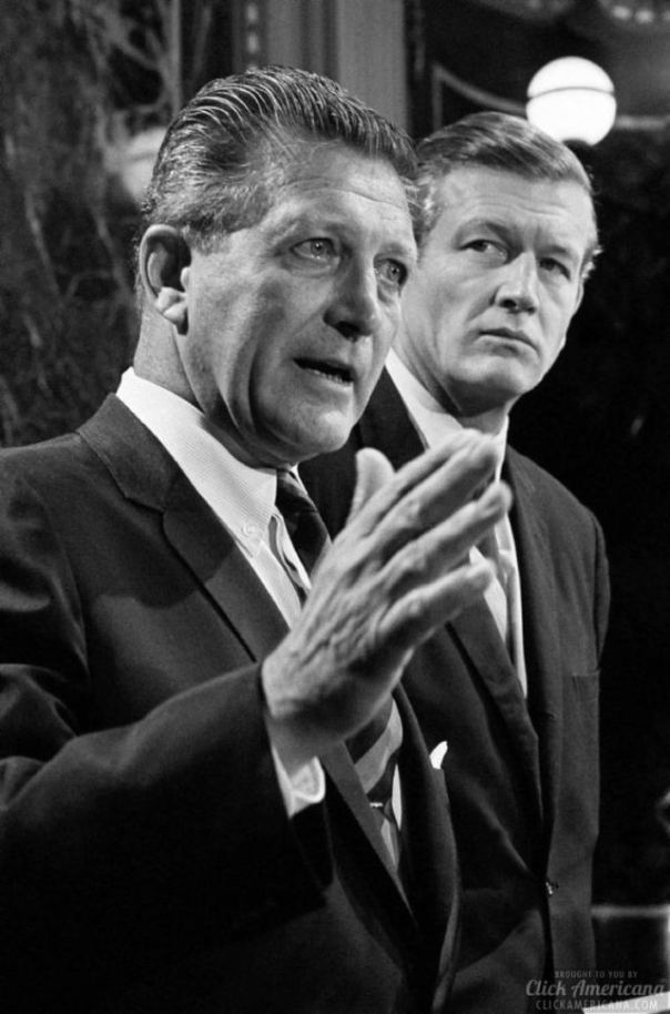 Then Illinois governor Otto Kerner, left, and New York mayor John Lindsay report on the National Advisory Commission on Civil Disorders in October 1967.