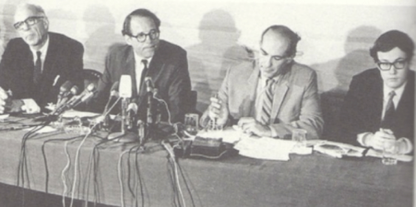 “Across Milk St. from the Post Office Building where Dr. Benjamin Spock’s case is being heard stands a sign that reads in large green letters: ‘Boston Five.’ A second look reveals smaller letters that complete the title of a branch office of The Boston Five Cents Savings Bank. But the anonymous adman who decided to capitalize those two particular words inadvertantly provided a sort of marquee for the drama of the so-called Boston Five and their fight against government prosecution for illegally counseling draft resistance. Inside the Post Office, in an austerely decorated twelfth-story courtroom, the adversaries in the case gathered last week for the first encounter in what may be a long legal duel. The five defendants–Spock, Yale Chaplain William Sloan Coffin, Harvard graduate student Michael K. Ferber, writer Mitchell Goodman, and former National Security Council staffer Marcus Raskin–were all there, each with one or more attorneys. So were…
