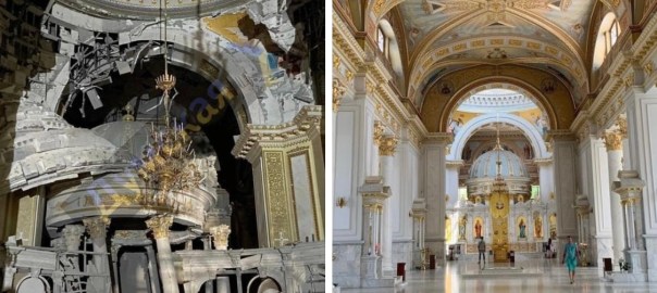 From Jamie Peipon (Day 514): It is unfathomable that this type of madness has carried on every day for 514 days. We’ve become desensitized to it and it can be hard to keep up. Both of these pictures are of the Transfiguration of the Savior Cathedral in Odesa, Ukraine. The darker one was taken tonight. This is not a military site. This is an orthodox church.
